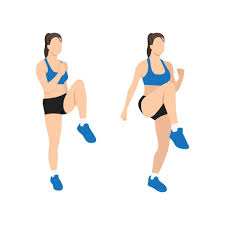 • Eleve os joelhos alternadamente o mais alto que conseguir, em ritmo acelerado.