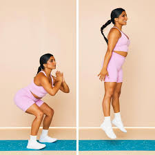 Este movimento trabalha pernas, glúteos e o sistema cardiovascular ao mesmo tempo. Você desce em agachamento e executa um salto ao subir — excelente para queimar calorias.